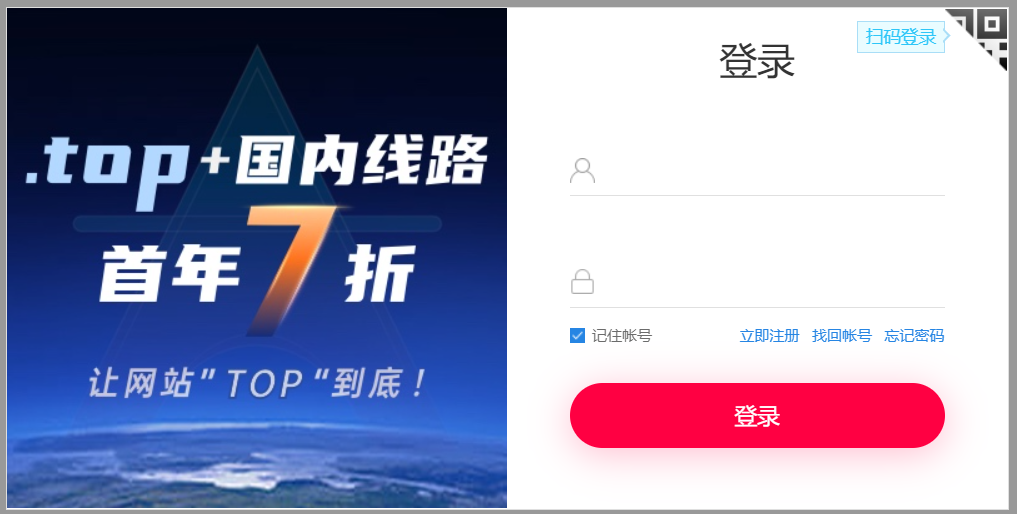 域名注册成功后,即可进入【管理中心】——【域名】——【顶级域名】页面,管理域名。