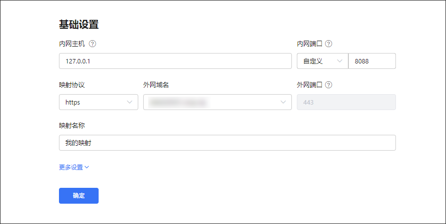 | 映射协议 | 根据实际情况选择HTTPS HTTPS:用于创建加密安全的网站,可在浏览器访问,外网端口443,花生壳已自动部署SSL证书,本地无需额外部署 「注意」:一个域名仅支持添加一条HTTPS映射 |