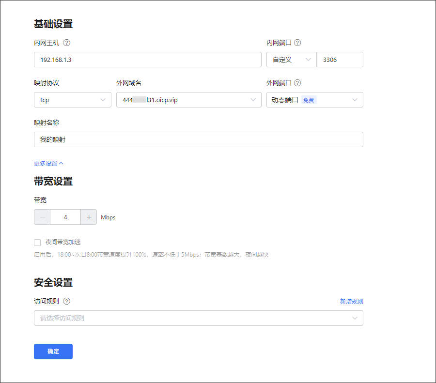 | 基础设置 | 内网主机 | 所映射的服务器内网IP地址 |