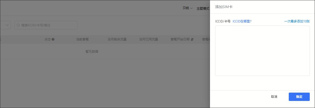 在添加SIM卡框中填写ICCID(最后一位可不输入);