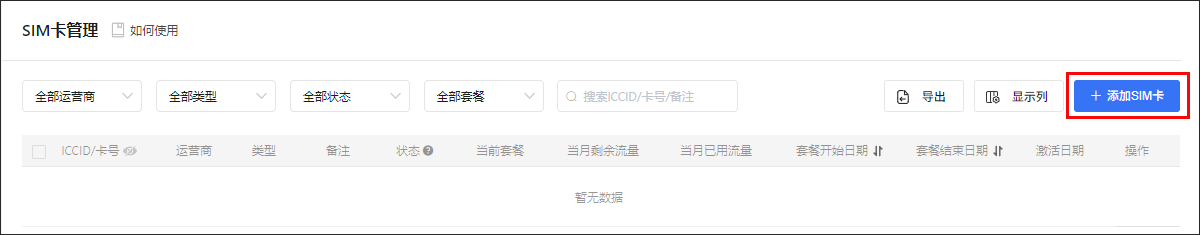 选择运营商,在添加SIM卡框中填写ICCID(最后一位可不输入);