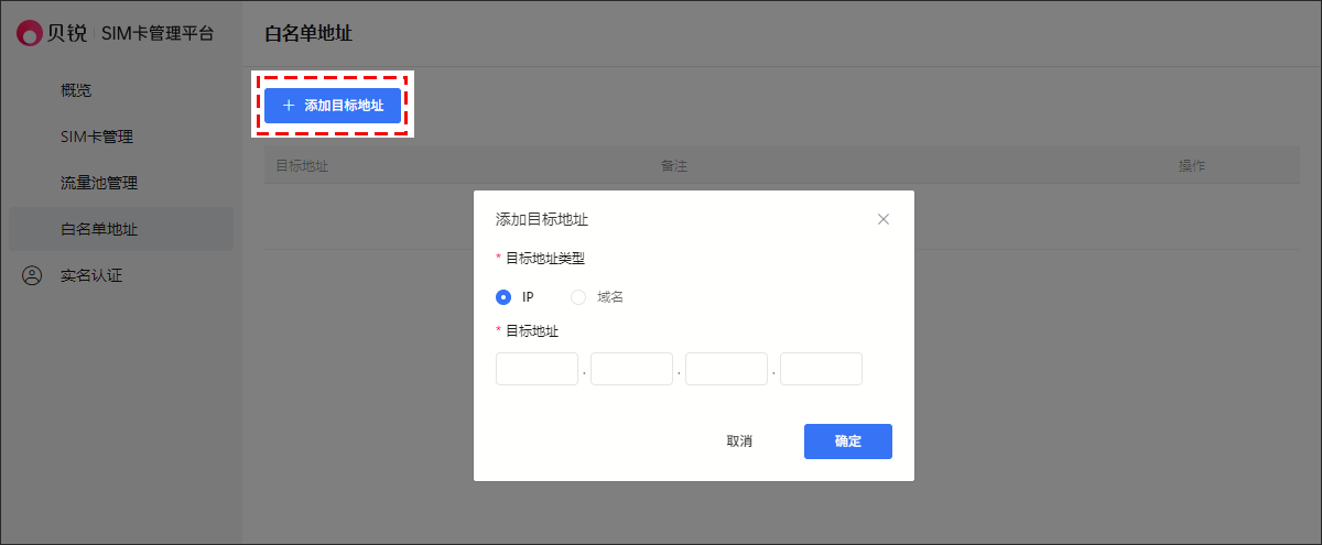 路径:【物联网SIM服务】-【白名单地址】