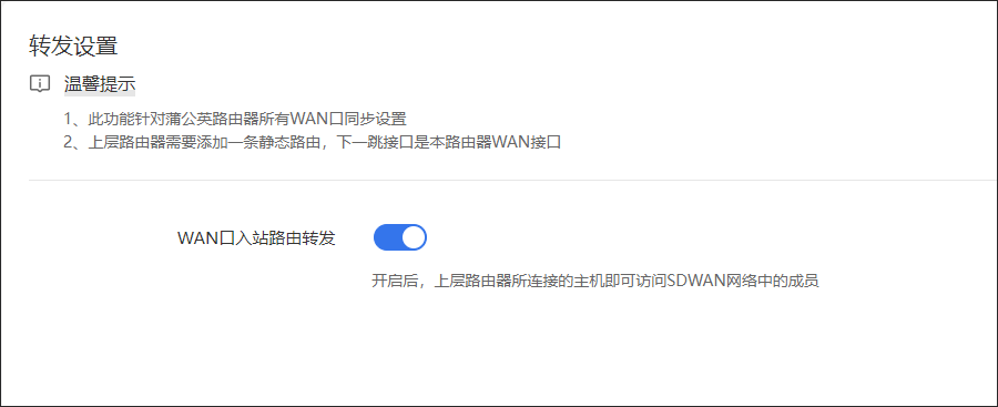 转发设置功能开启后,蒲公英上级路由所连接的主机即可访问蒲公英组网中的成员。