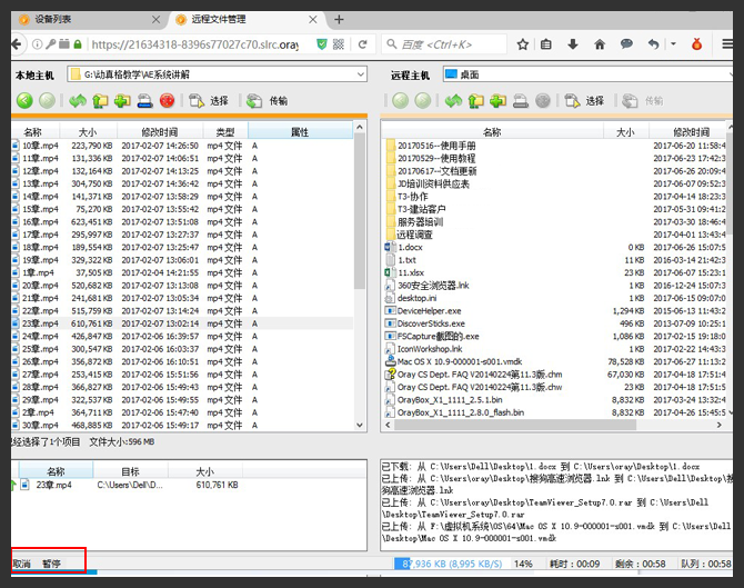 成功连接后,将默认打开本地与远程计算机的桌面目录。