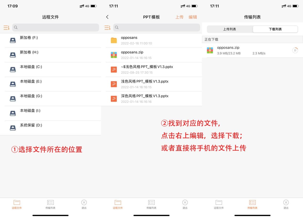 无论是PC还是手机,我们直接在对应设备的详情页面点击【远程文件】,就能进入相应界面进行文件传输,十分便捷,下图就是我外出使用手机存取文件的画面。