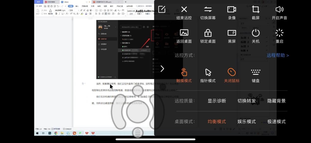 操作方面,向日葵搭载了触摸模式和指针模式,使用是十分方便的,各位可以根据自己的需要选择,个人感受下来指针模式更适合精准操作,触摸模式则接近手机的触屏,比较高效,建议相互结合使用。
