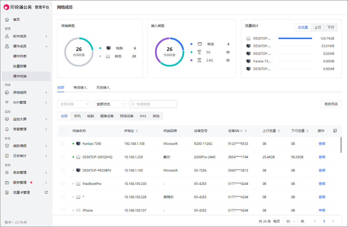 功能描述:该功能可查看已绑定当前账号的蒲公英路由器及蒲公英AP下联的终端设备信息。
