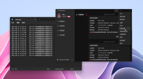 可查看该账号下所有设备的被控记录,包含他人发起和自主发起,识别码及绑定设备的任何被控记录。