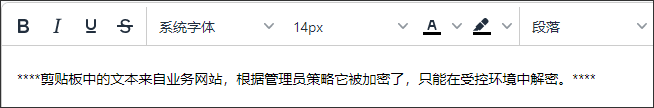 即在当前网站复制内容,仅针对洋葱头管理平台配置的“网站应用”进行剪贴板解密处理;非“网站应用”范围内的网站进行粘贴,均为加密后的效果。