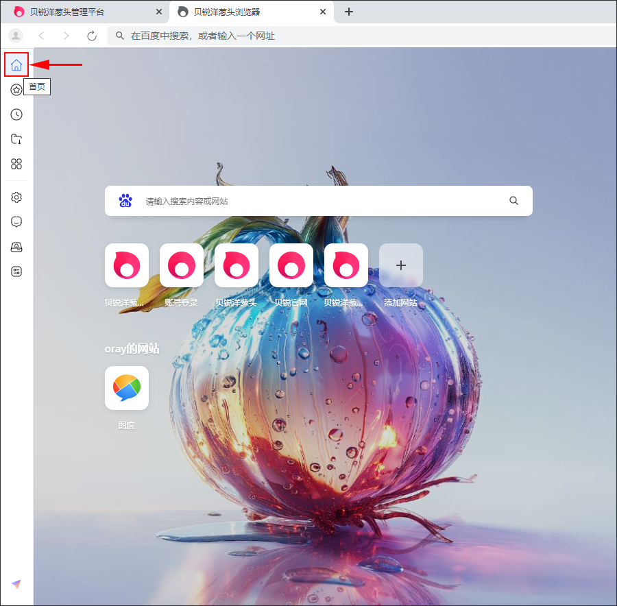 打开侧边栏,点击【首页】,或者打开新标签页都将进入浏览器首页。首页默认为搜索页,用户可以在此发起搜索行为。