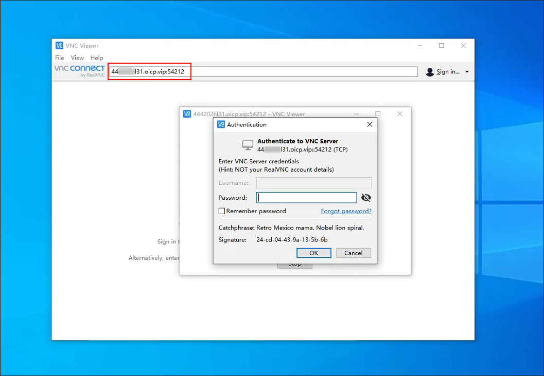 RealVNC Viewer中输入外网地址及外网端口(格式为 外网域名:外网端口),即可实现外网远程RealVNC Server。