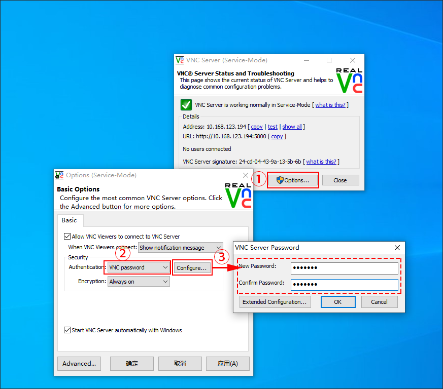 1.配置RealVNC Server远程密码
