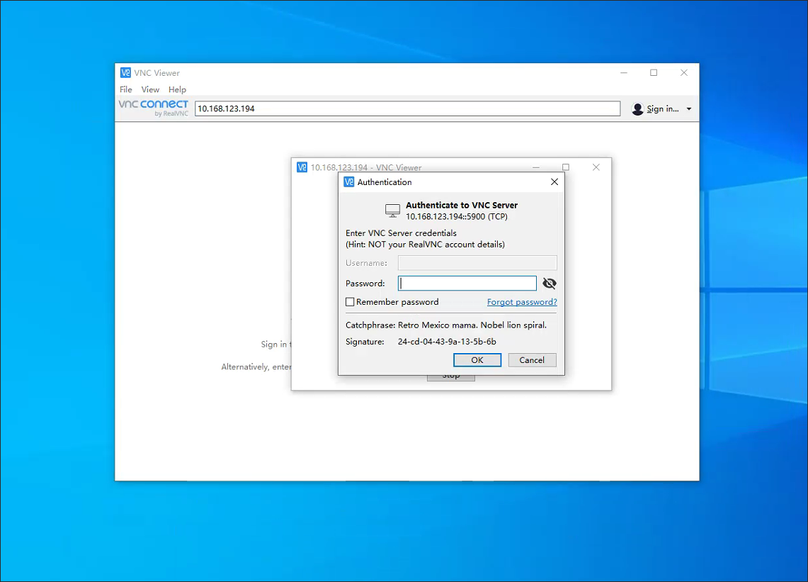 (2)RealVNC Server远程密码设置完成,与RealVNC Server在相同局域网内的主机可通过RealVNC Viewer进行远程控制。