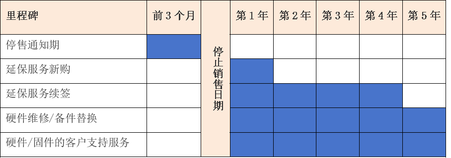 产品停止销售后一年内,客户可新签延保服务合同,一年后仅接受原有延保服务合同续签。产品停止销售满四年后,原则上不再提供延保服务续签。