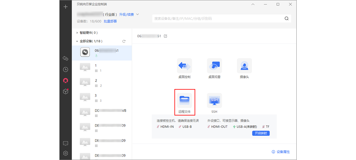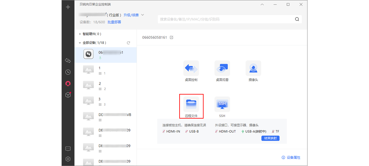 (3)选择目标被控设备,点击 <远程文件> 功能;