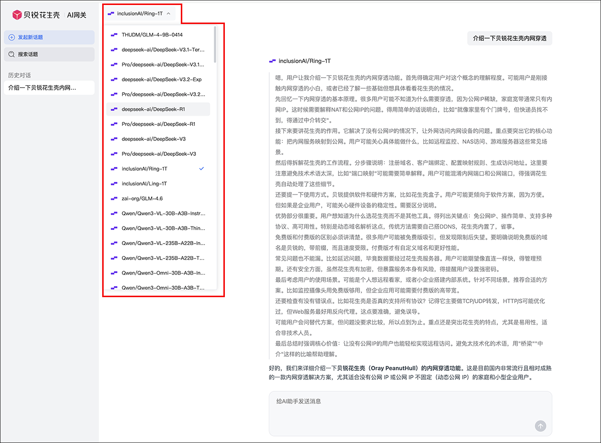 花生壳AI网关的核心功能是统一管理、分发和监控所有已接入的AI服务。它可以将不同来源的AI服务抽象为统一的格式输出,并生成公网可访问的链接。是个人实现本地AI服务随时随地访问的好帮手,也是企业实现AI聚合分发与稳定运维的必备组件。
