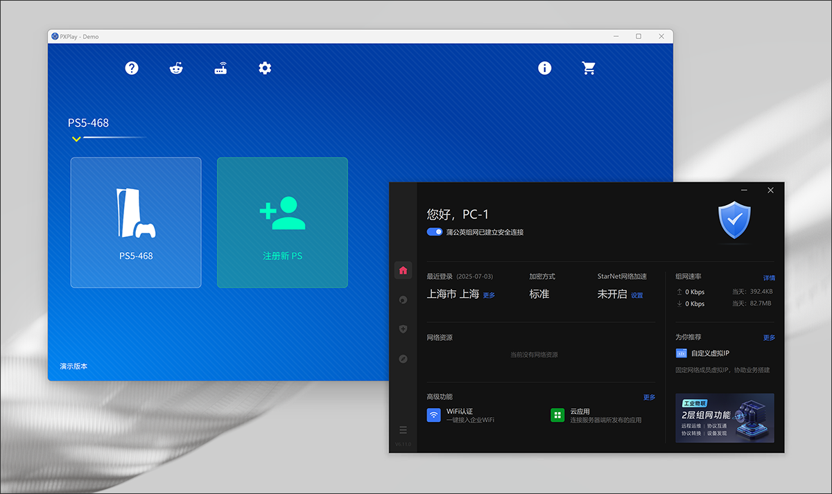 (3)在电脑上安装pxplay软件客户端,并确保家中PS5已登录PSN帐号及开启远程游戏功能。