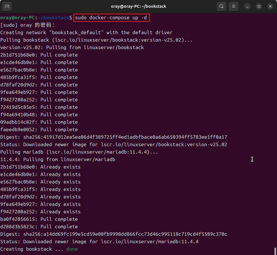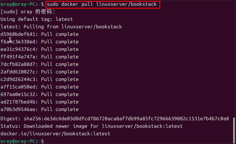 使用docker拉取bookstack的最新镜像。sudo docker pull linuxserver/bookstack