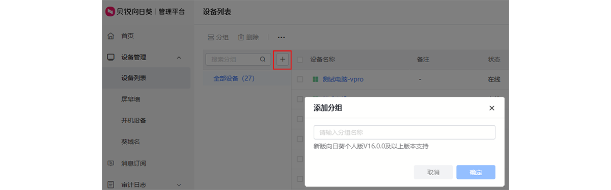 操作路径:【向日葵管理平台】->【设备管理】->【设备列表】