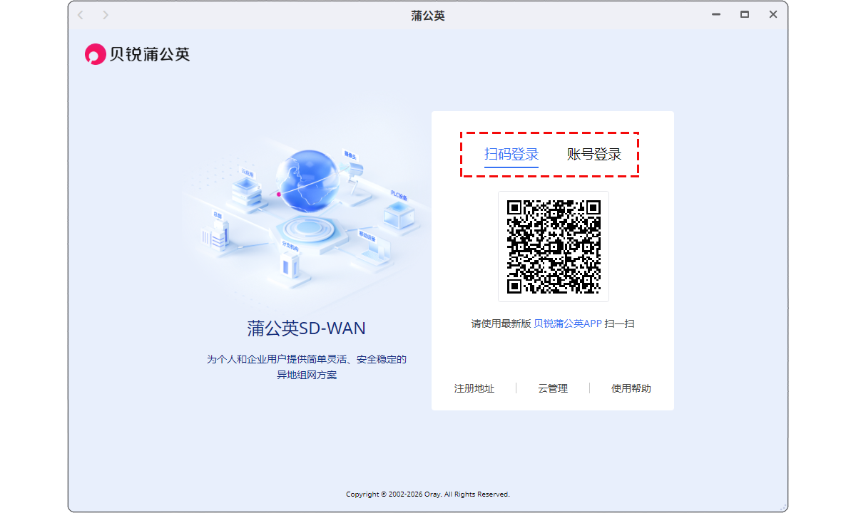 (2)应用安装后,可通过蒲公英系列APP扫码或使用贝锐账号/UID进行登录。