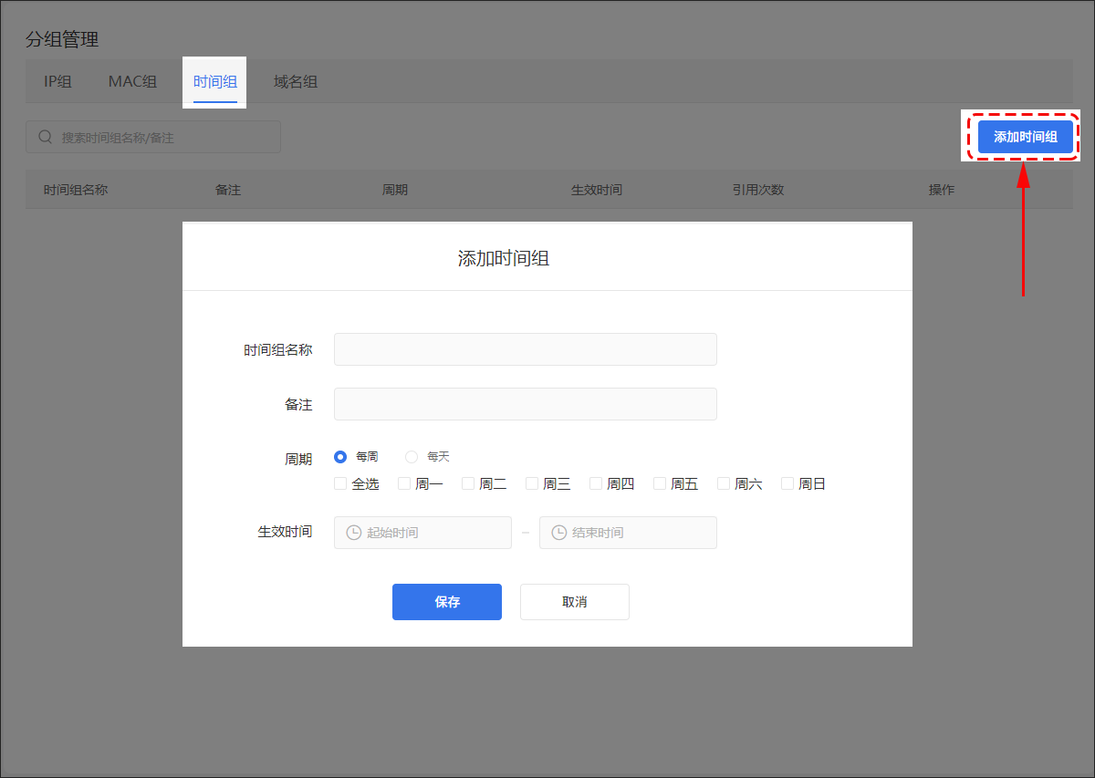 创建时间组并设置生效时间。