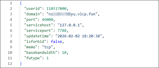 | fwtype | 映射类型 | 1=TCP, 2=HTTP, 3=HTTPS, 4=UDP |