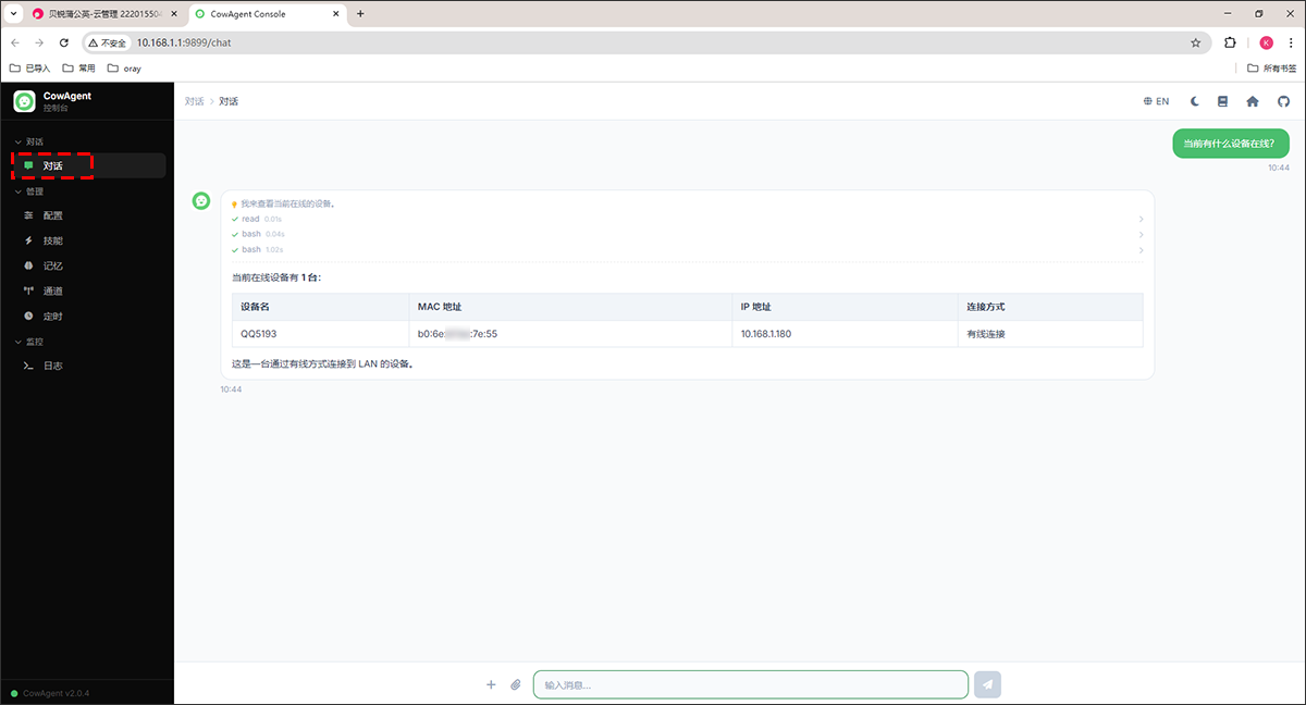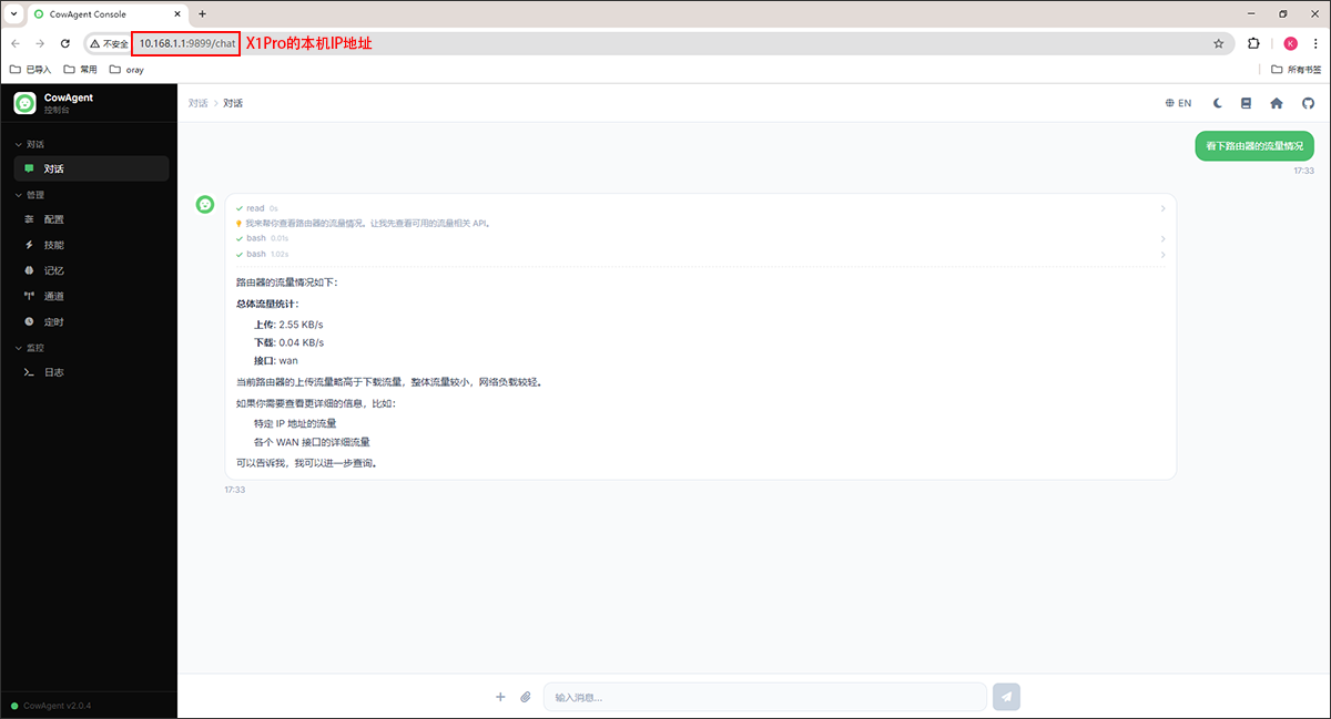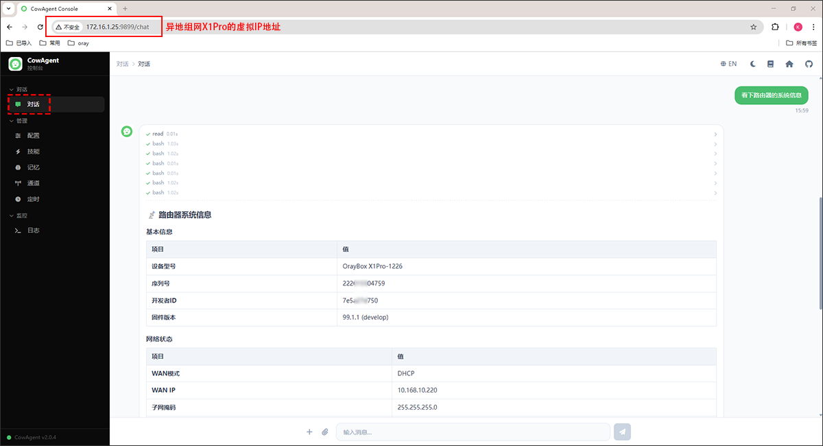 (2)异地组网成员,可通过http://X1Pro的本机地址:9899 或 http://X1Pro的组网虚拟IP地址:9899 进行访问对话。