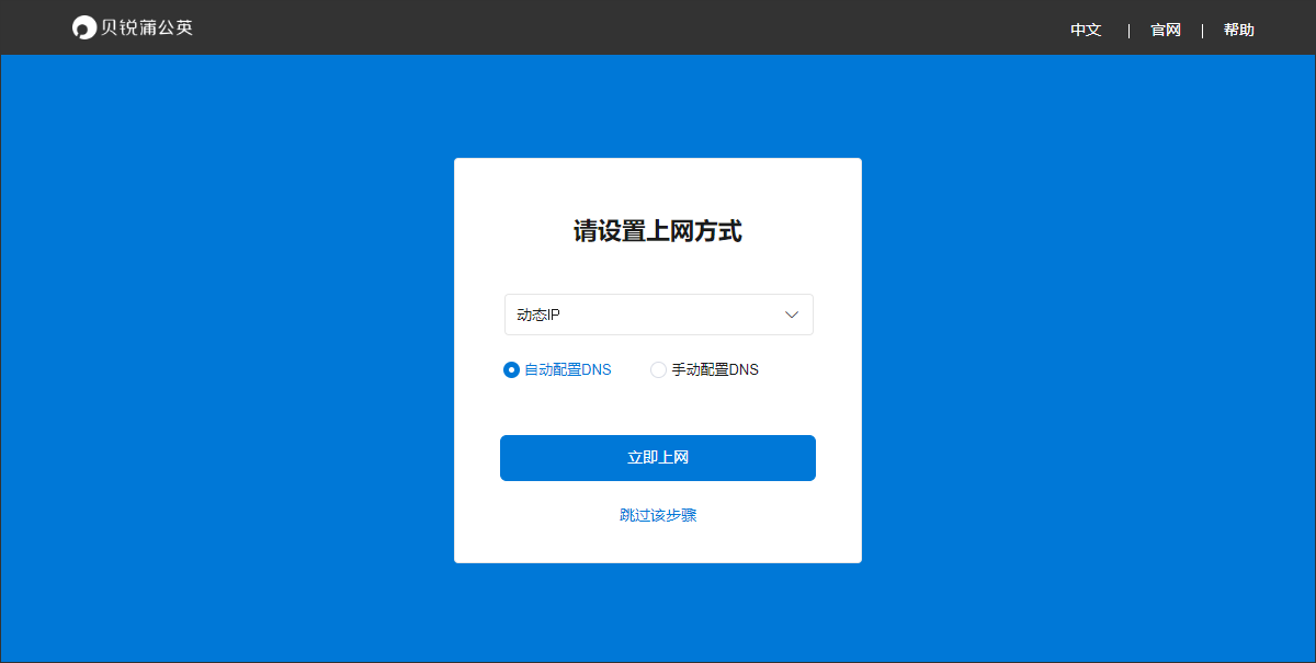 (1)电脑连接路由器LAN口,通过 http://oraybox.com 进入蒲公英本地管理界面,点击“上网设置”,在“上网方式”中选择动态IP或静态IP进行上网,并完成后续初始化流程;