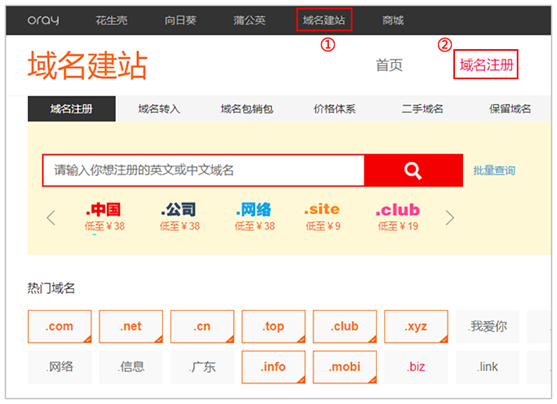 贝锐域名建站是中国排名前十的域名注册服务商!快速稳定的DNS解析、自由转入/转出/过户,PC+手机+微信网站+小程序+APP,海量精美模板可视化编辑、无需编程知识、快速上线。此外多个品牌的全球知名数字证书颁发机构(CA)供您选择申请简单、快速颁发。2003年推出域名注册服务以来,Oray已成为中国十大域名注册服务商之一,通过Oray DNS解析的免费域名和顶级域名累计达到240万个。