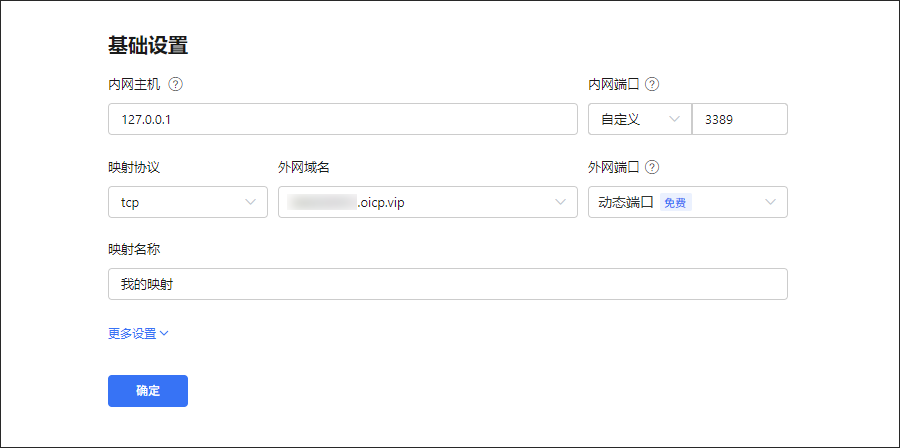 | ⑤ | 外网端口 | 根据服务类型选择(固定端口:需购买、删除映射后可重复使;动态端口:免费系统随机分配) |